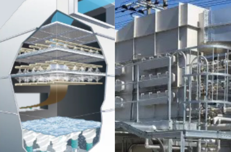 スクリーンに水膜を形成し、気液接触効率100%を実現。臭気成分と微細粉塵を逃さず捕捉します。タンク内に散気管を搭載し、捕捉した有機物を生分解することで、循環水の腐敗やスラッジの発生を抑制し、循環水の長期クローズ化を実現します。これまでの水洗スクラバー式脱臭機の欠点を一掃した、次世代の超高性能集塵排ガス処理装置を提案しております。